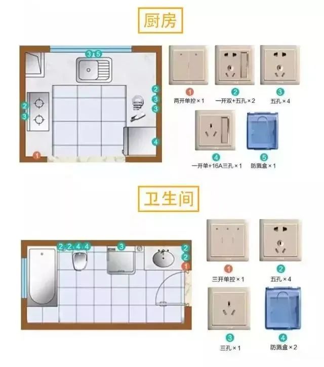 衛生(sheng)間空氣(qi)潮(chao)濕,經(jing)常用(yong)水,插座要帶防濺盒。