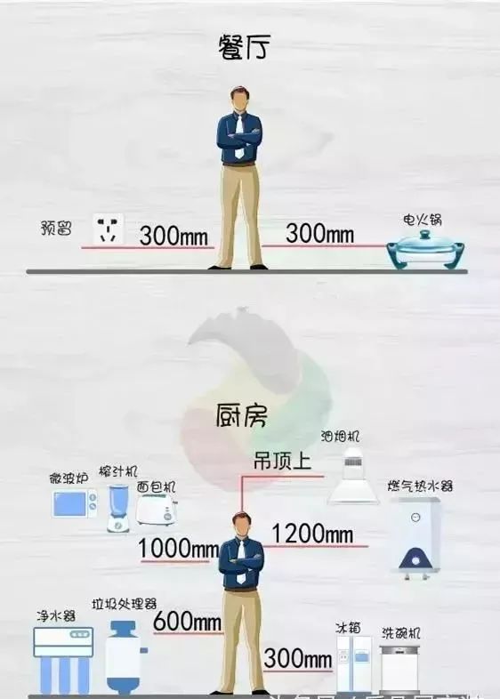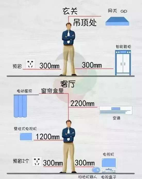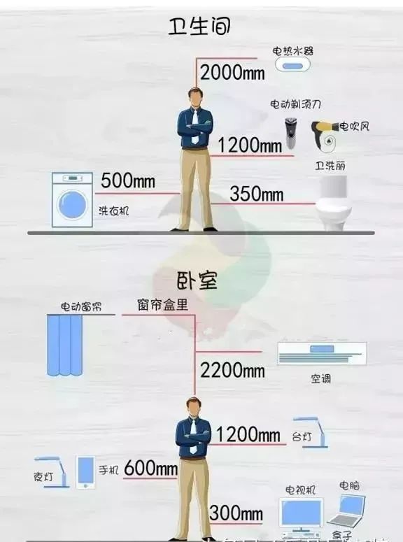 如果你覺得上面的(de)表格比較抽象的(de)話(hua),我(wo)們再來看一(yi)下插座布置高(gao)度圖表,這樣你該對插座安(an)裝(zhuang)位置一(yi)目(mu)了(le)然了(le):