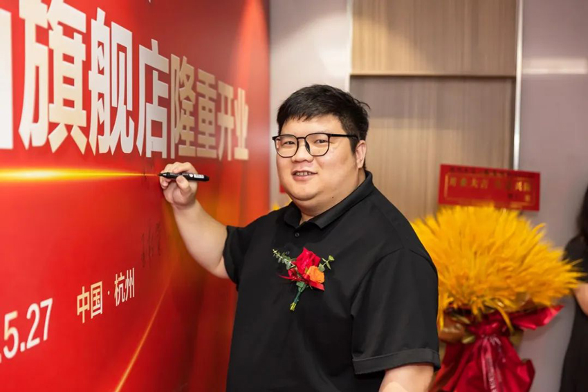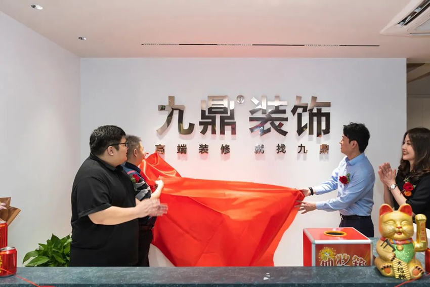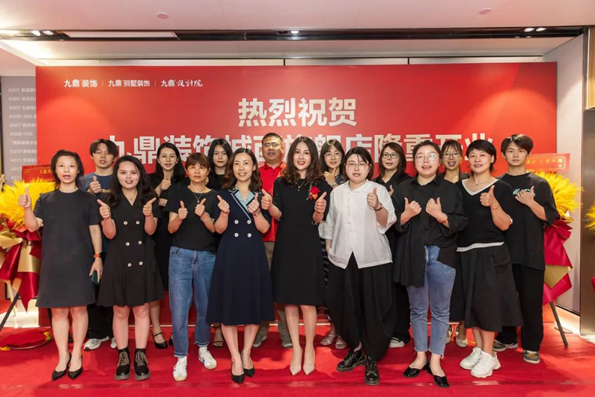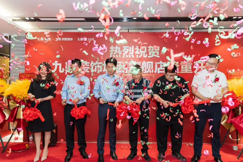 2023年(nian)5月27日(ri),杭(hang)州九鼎裝(zhuang)飾城(cheng)西旗艦店(diàn)盛(sheng)大(da)開業。九鼎裝(zhuang)飾創始人(ren)周國(guo)團(tuán)先(xian)生(sheng),九鼎裝(zhuang)飾總裁周帥先(xian)生(sheng),九鼎裝(zhuang)飾副總裁張衛先(xian)生(sheng),新(xin)時代(dai)傢(jia)居生(sheng)活廣(guang)場(chang)倪總、於總受邀來到(dao)現(xian)場(chang),恭祝九鼎裝(zhuang)飾城(cheng)西店(diàn)開業大(da)吉。