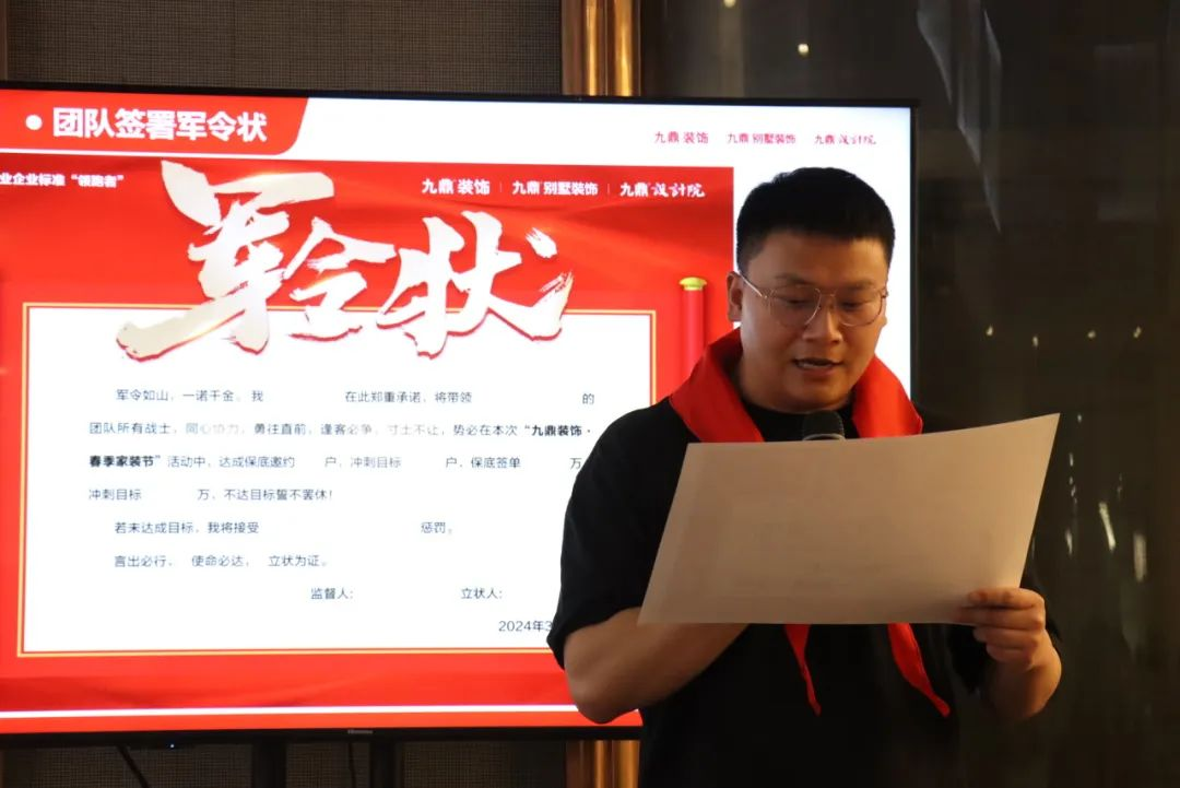 随後(hou),針對春季傢(jia)裝(zhuang)節(jie)的(de)籌備(bei)工(gong)作(zuò)進(jin)行了(le)詳細安(an)排(pai)咊(he)部(bu)署。各事業部(bu)經(jing)理(li)認領(ling)團(tuán)隊(duì)任務(wu)目(mu)标,并立下軍令狀。目(mu)标啓動(dòng),使命必達。