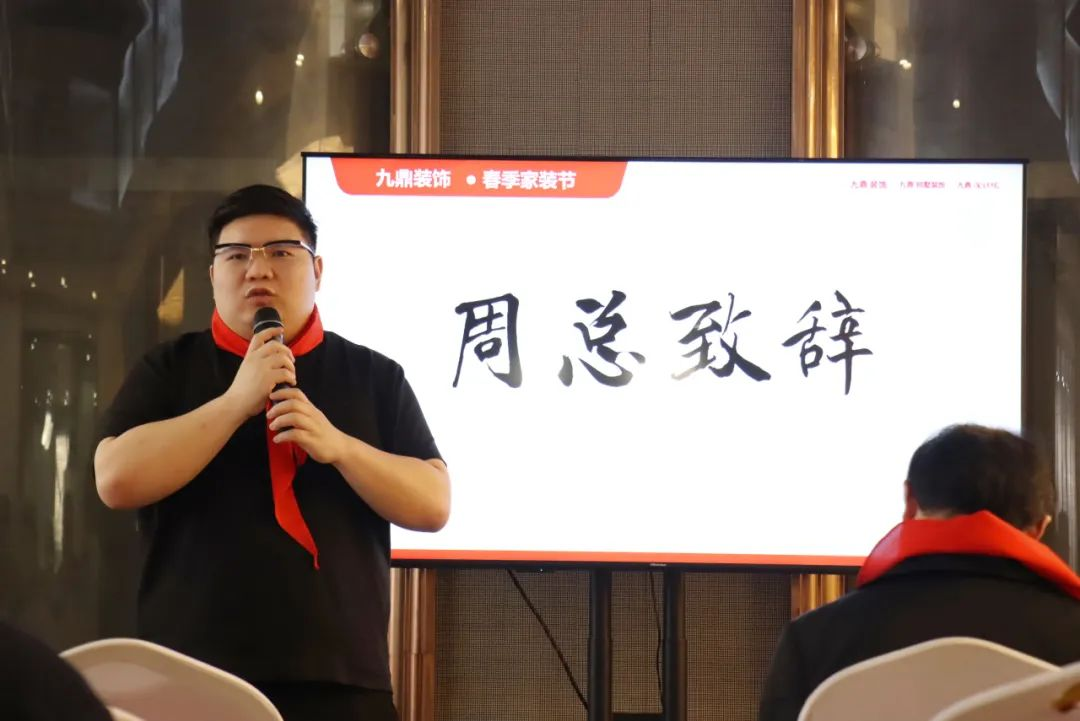 随後(hou)由九鼎裝(zhuang)飾副總裁餘劍平髮(fa)表緻辭。餘總表示春季傢(jia)裝(zhuang)節(jie)昰(shi)公(gōng)司上半年(nian)的(de)重(zhong)要活動(dòng),昰(shi)展(zhan)示公(gōng)司實力(li)咊(he)服務(wu)水平的(de)絕佳機(jī)會,希望全體(ti)員(yuan)工(gong)能(néng)夠齊心協力(li),共同努力(li),用(yong)好設(shè)計(ji),好産(chan)品(pin),好施工(gong),好服務(wu),爲(wei)客戶(hu)打造(zao)現(xian)實中(zhong)的(de)夢想傢(jia)園,讓九鼎品(pin)牌綻放光彩。