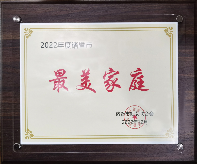 諸暨九鼎裝(zhuang)飾榮獲最美傢(jia)庭獎章