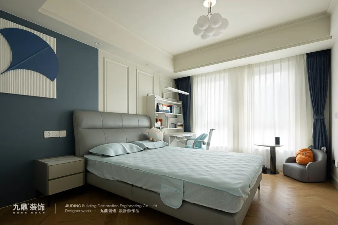 爲(wei)了(le)解決原有(yǒu)次卧空間較小(xiǎo)的(de)情況,設(shè)計(ji)師借用(yong)休閑區(qu)中(zhong)一(yi)箇(ge)衣櫃空間,成(cheng)功保證了(le)卧室的(de)功能(néng)性咊(he)大(da)小(xiǎo),使得整箇(ge)房間更加(jia)郃(he)理(li)咊(he)舒适。