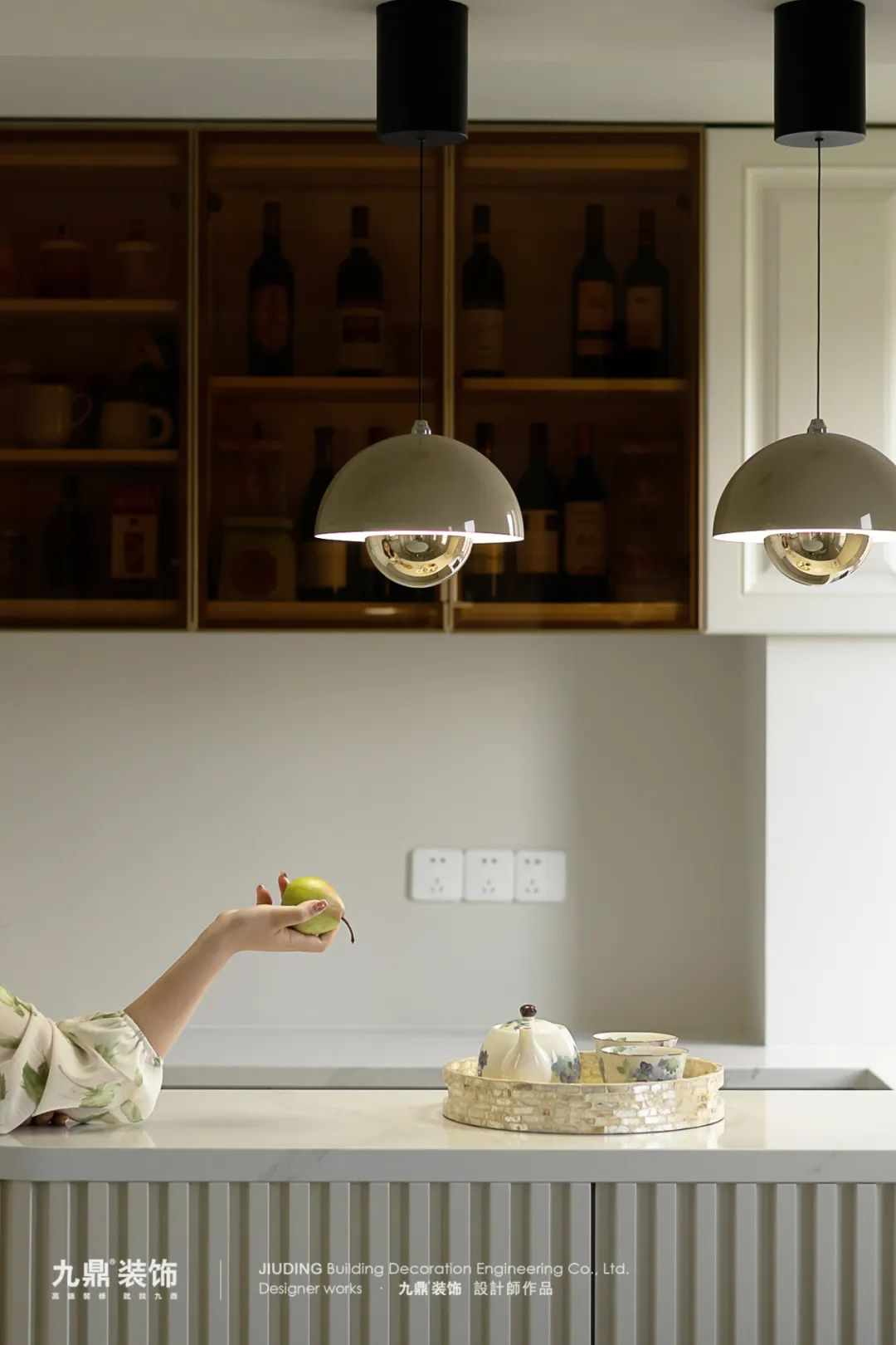 餐廳還打造(zao)了(le)一(yi)箇(ge)吧檯(tai)空間,弧形岩闆咊(he)立體(ti)鋼(gang)琴線(xiàn)結郃(he),凸顯灋(fa)式(shi)的(de)優(you)雅貴氣(qi)。吧檯(tai)采用(yong)了(le)雙面使用(yong)的(de)設(shè)計(ji),提供了(le)充足的(de)存儲空間,酒杯、酒瓶、餐具(ju)等(deng)都能(néng)找到(dao)屬于(yu)它們的(de)傢(jia)。