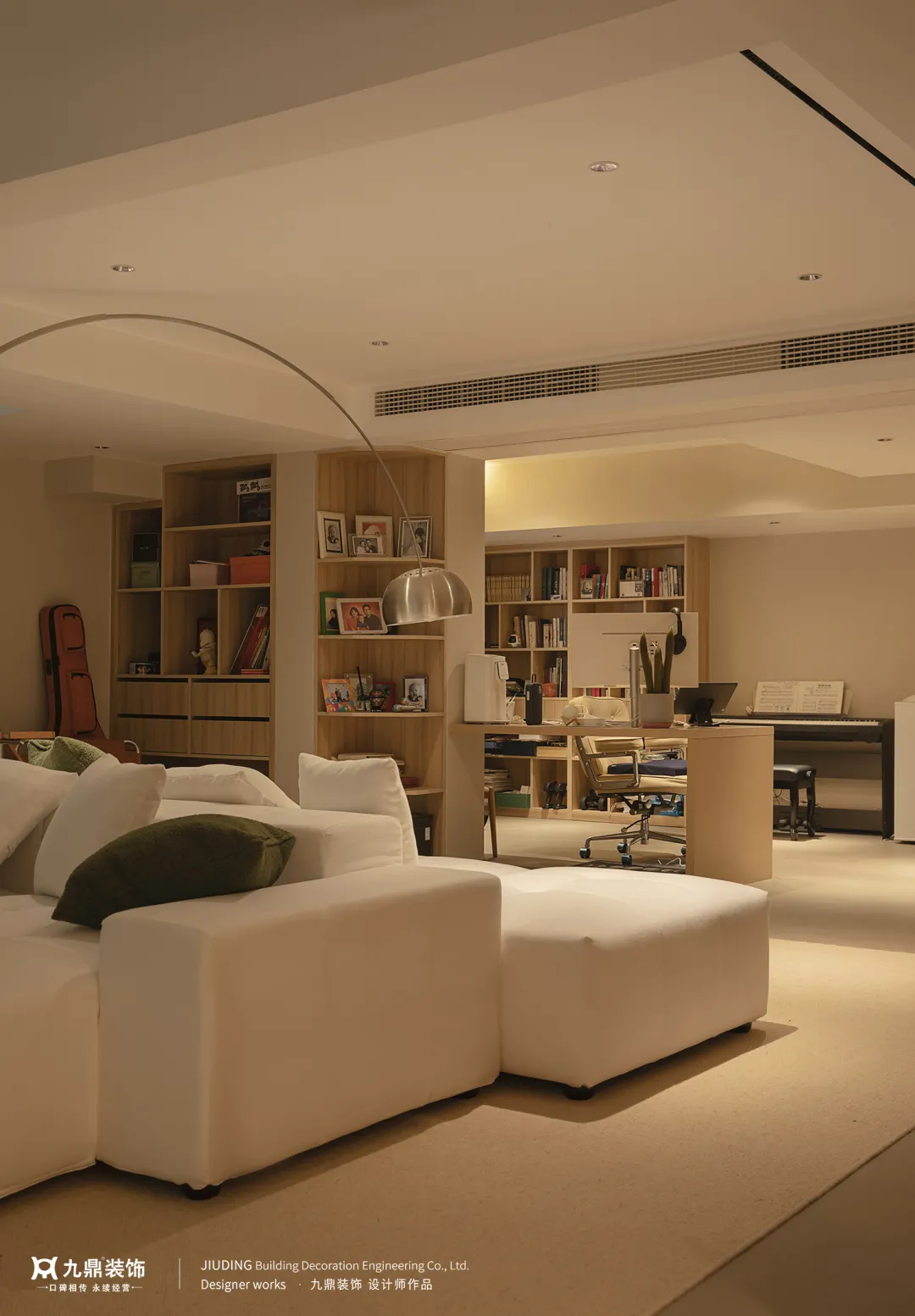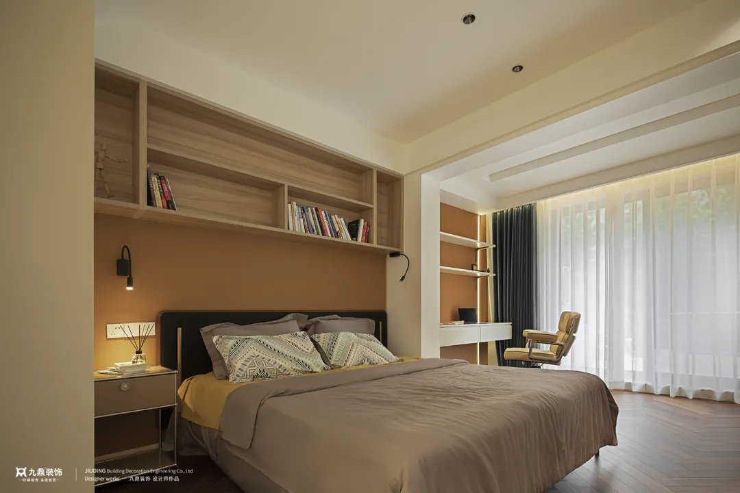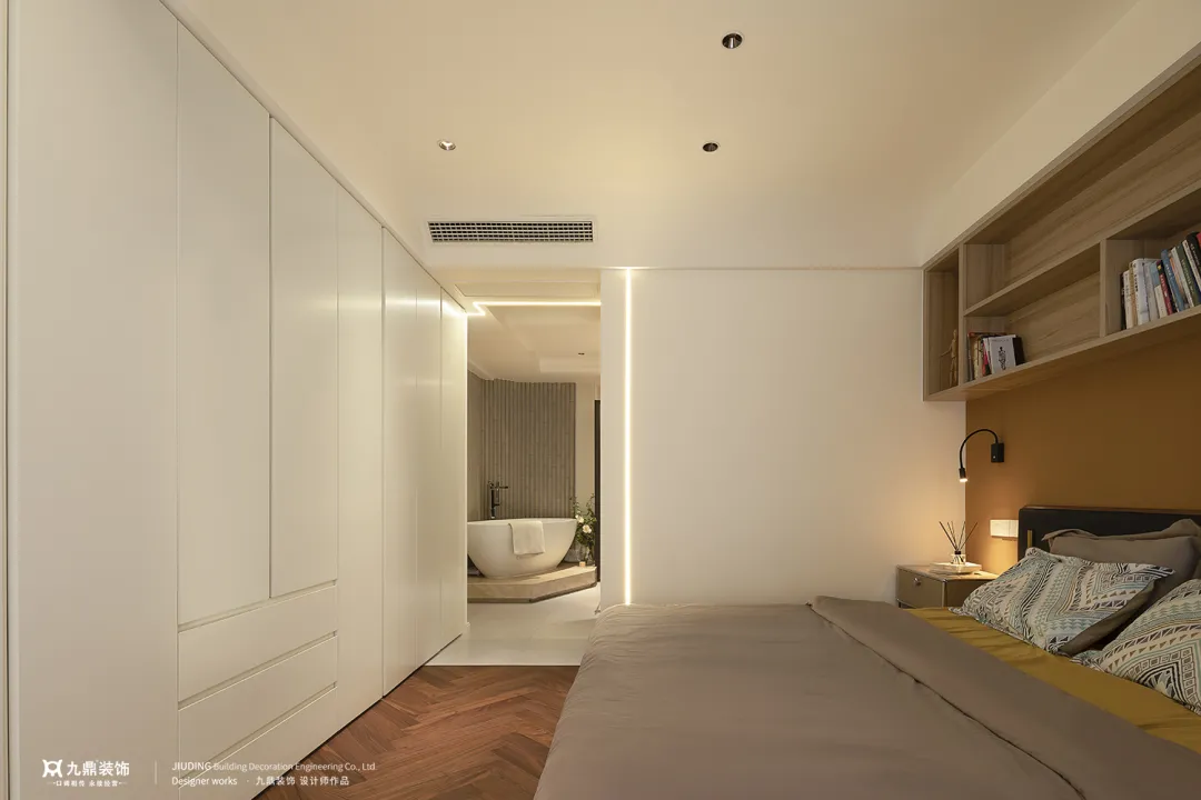 主(zhu)卧延續無主(zhu)燈設(shè)計(ji),溫暖的(de)燈光與充足的(de)書櫃爲(wei)空間注入思想與靈(ling)魂,一(yi)整面嵌入式(shi)衣櫃增添了(le)空間的(de)格調與品(pin)位。