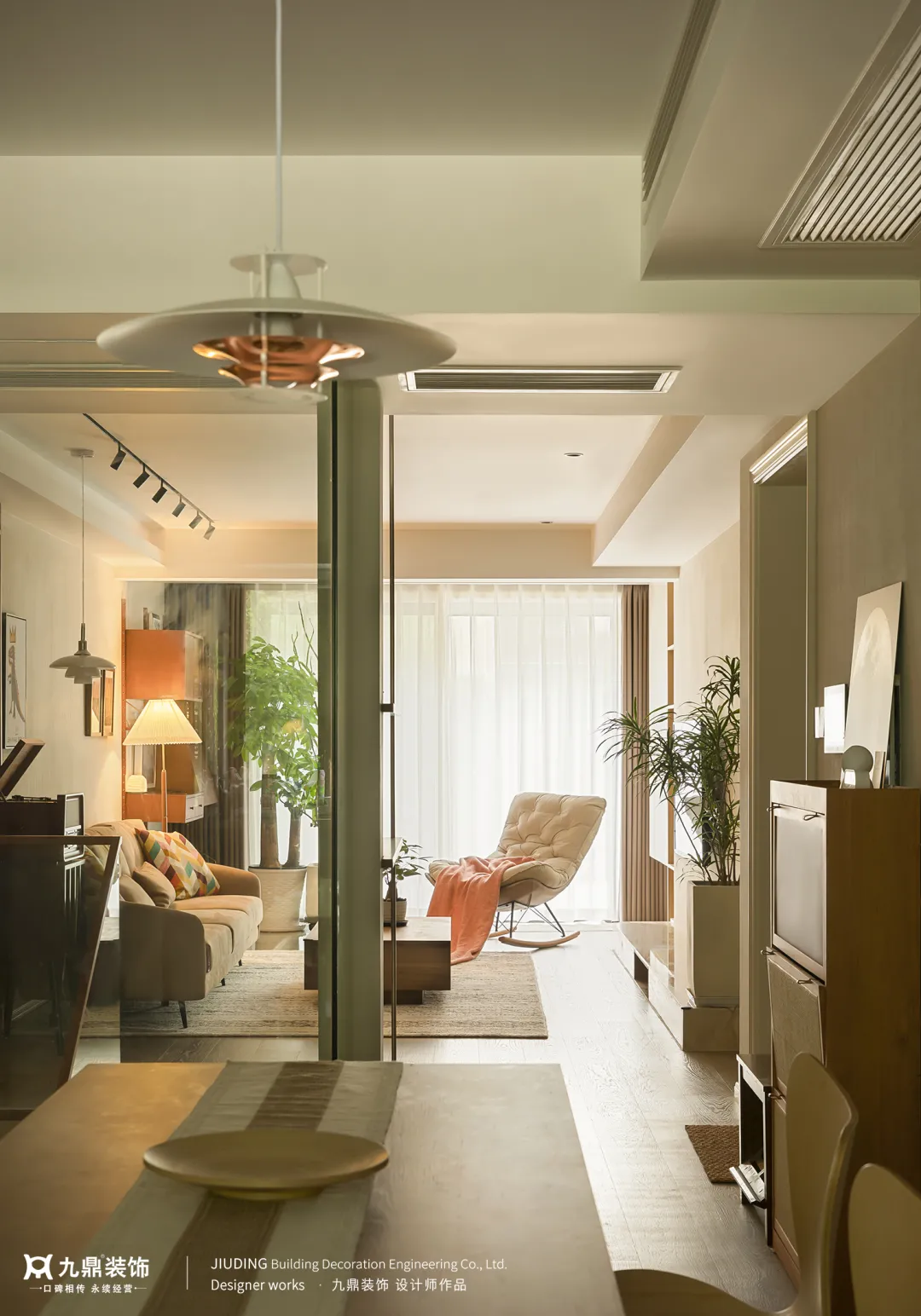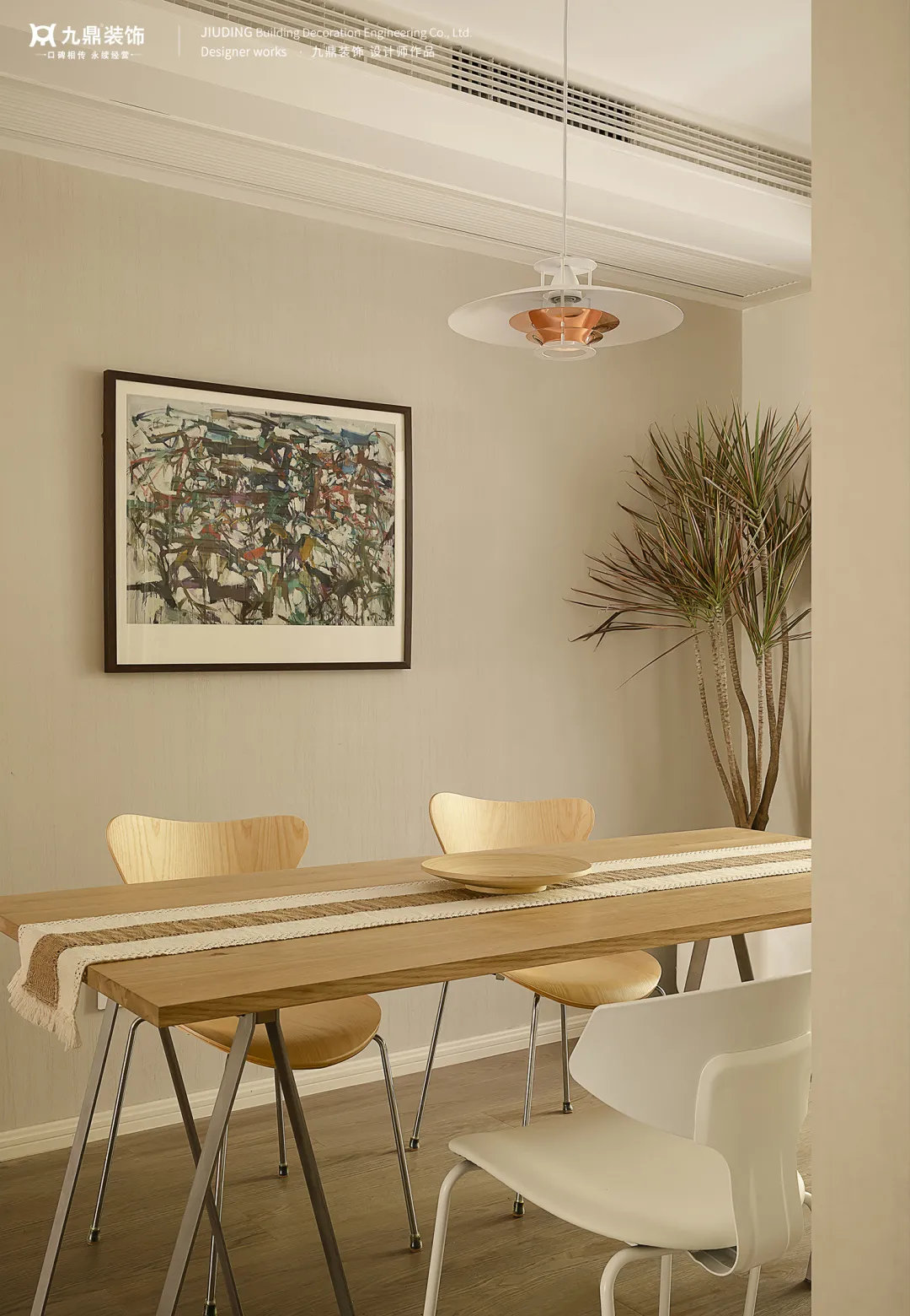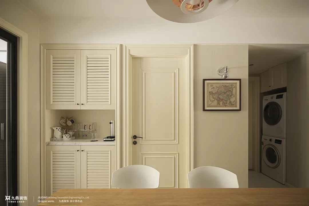 餐廳與客廳間告别呆闆分(fēn)隔,複古(gu)元素點綴,柔軟的(de)奶白色咊(he)溫潤的(de)原木(mù)色,營(ying)造(zao)出天然舒适的(de)就餐環境。優(you)雅的(de)調性與煙火氣(qi)彌漫每箇(ge)角落。