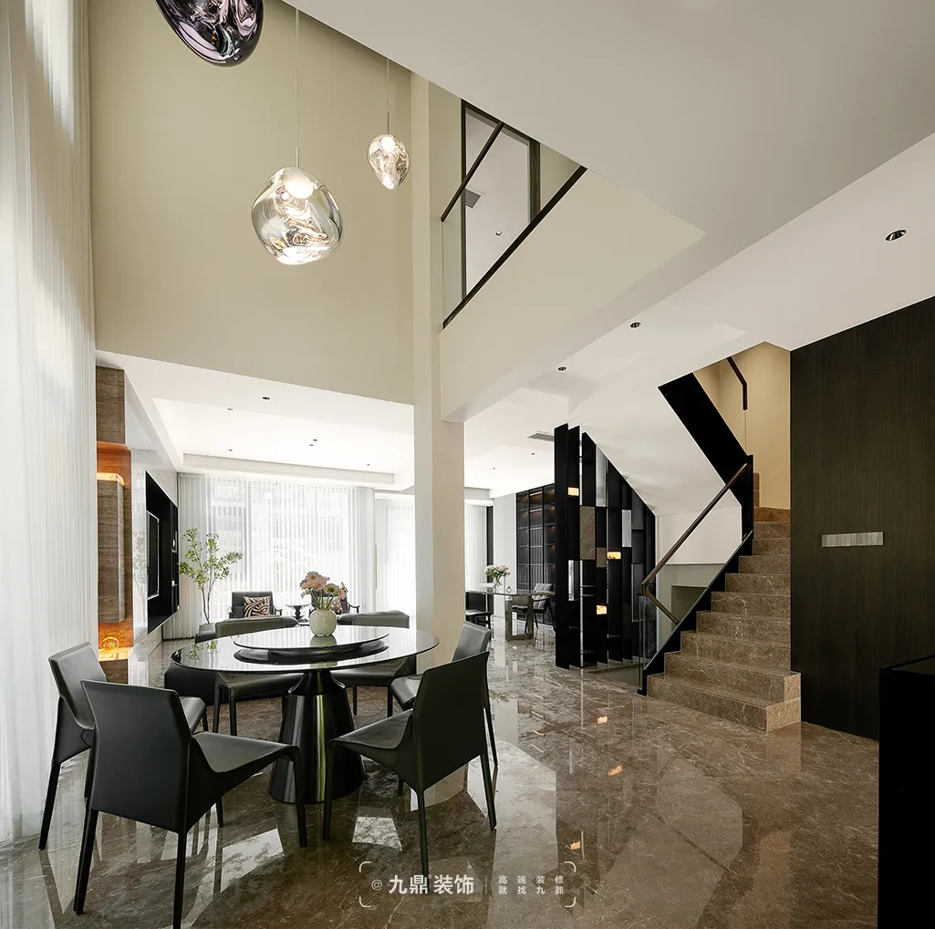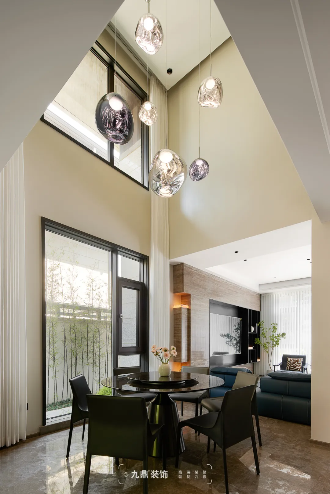 餐廳一(yi)層與二層之(zhi)間形成(cheng)的(de)挑空格跼(ju),敲掉了(le)原有(yǒu)的(de)固封牆體(ti),6米高(gao)的(de)中(zhong)空廳落地窗讓空間自由地沐浴在(zai)自然光景中(zhong),可(kě)獨享日(ri)出的(de)洗禮,同時,将室外的(de)一(yi)切于(yu)無形中(zhong)悄然引入室內(nei),打造(zao)流動(dòng)的(de)空間體(ti)驗(yàn)。