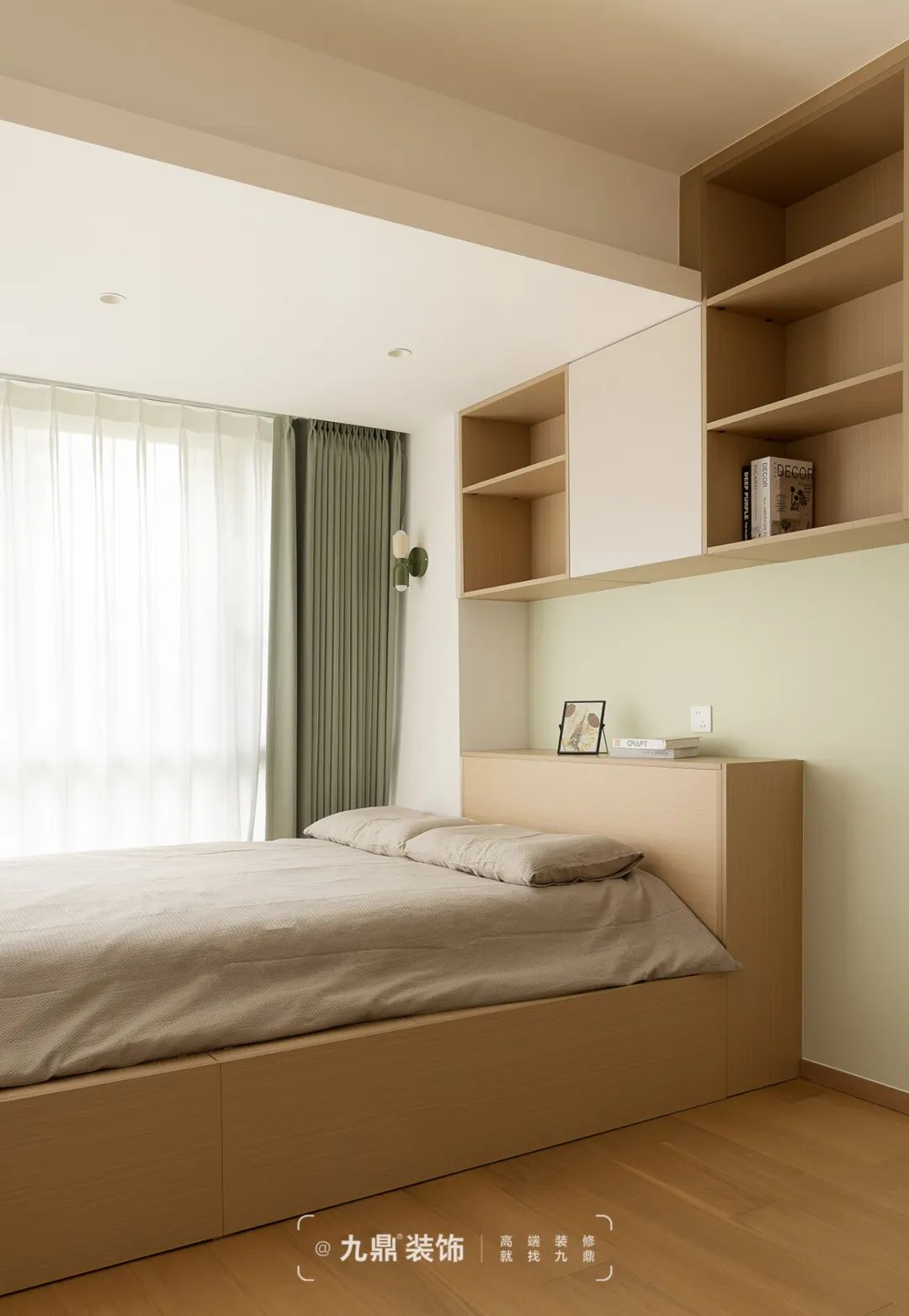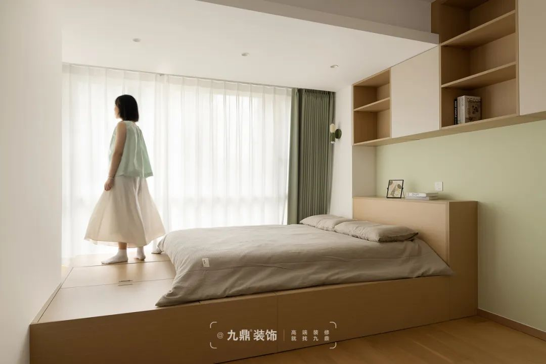 兒童房整體(ti)采用(yong)白色+原木(mù)色,牆面還融入綠色,點亮空間色彩。地檯(tai)牀(chuang)靠窗打造(zao),三面圍繞,牀(chuang)下方(fang)做定製(zhi)收納櫃,增加(jia)收納空間,從(cong)而達到(dao)空間的(de)高(gao)效利用(yong)。