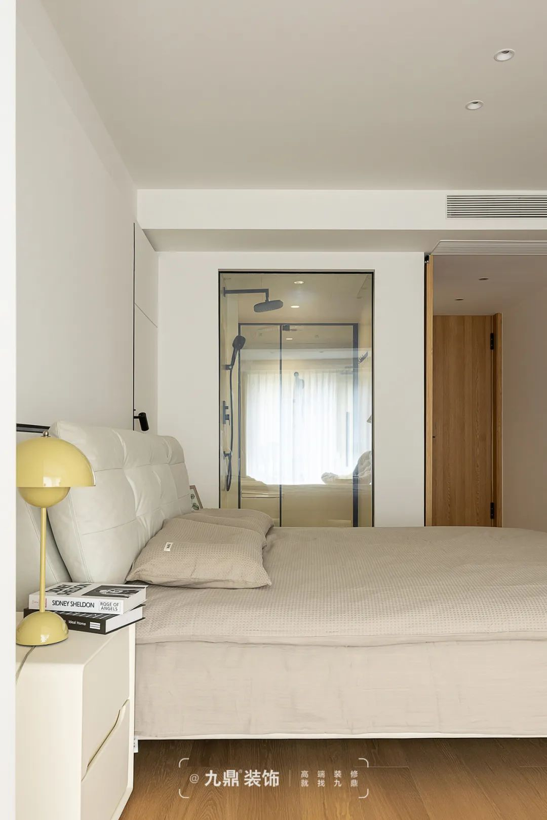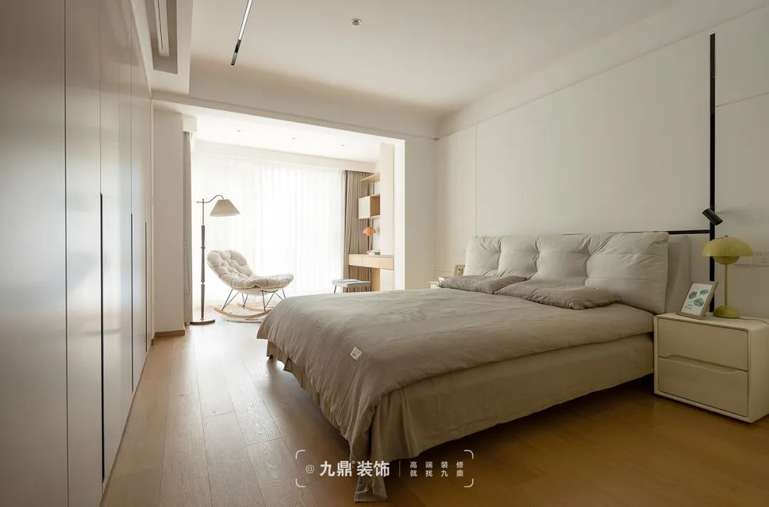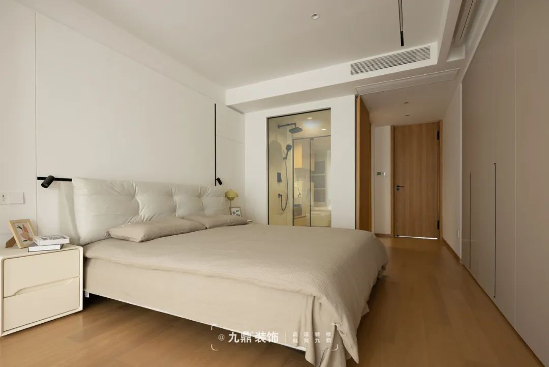 主(zhu)卧以(yi)大(da)面積的(de)白色作(zuò)主(zhu)色調,搭配(pei)暖色木(mù)地闆,更添一(yi)分(fēn)溫馨與寧(ning)靜。與此同時利用(yong)玻璃牆代(dai)替實牆,通(tong)透唯美,且更具(ju)層次感,讓光線(xiàn)充分(fēn)滲透,輕松打造(zao)視覺延伸感。