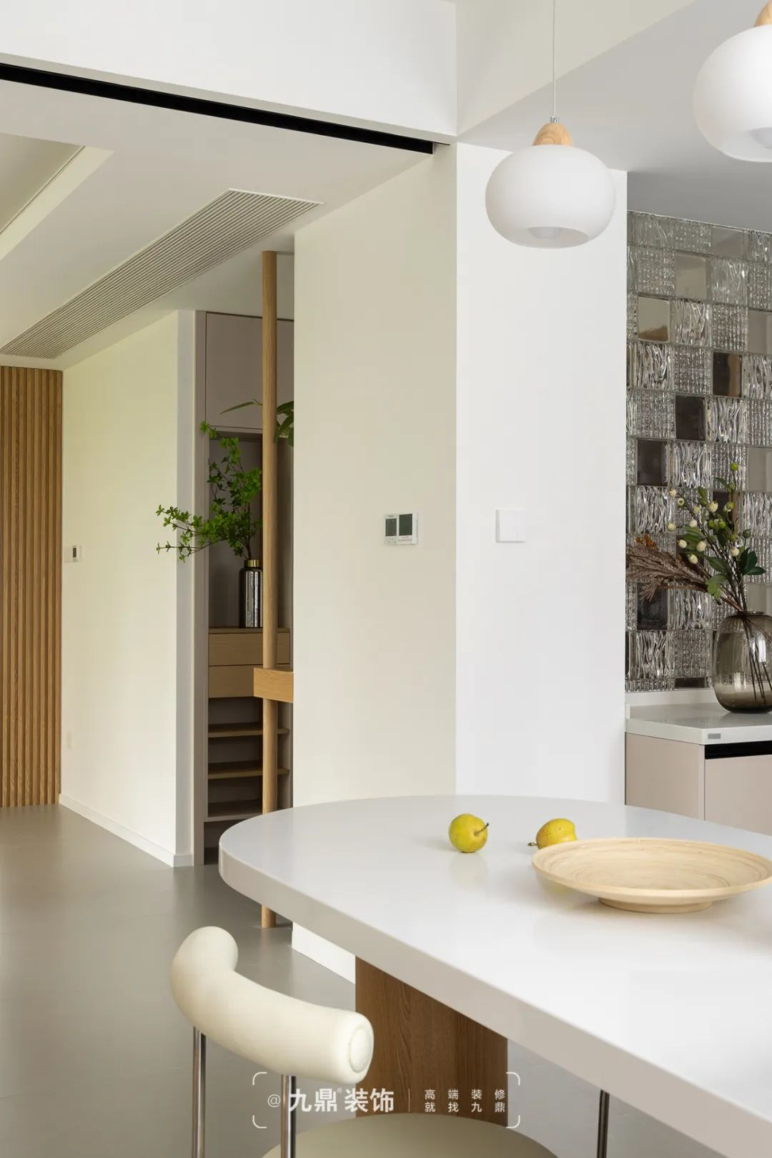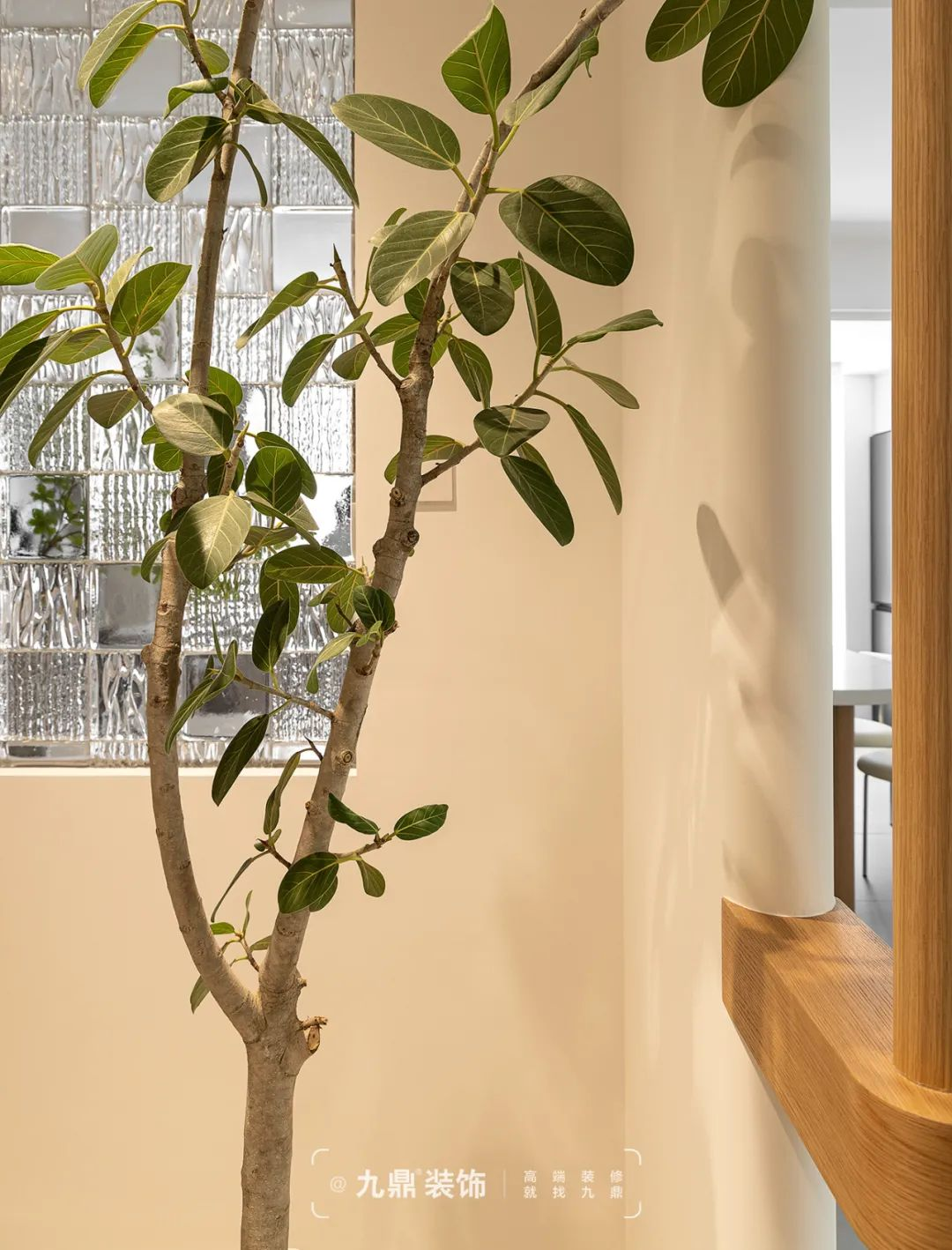 玄關的(de)玻璃磚隔斷(duan)設(shè)計(ji),在(zai)引入自然光線(xiàn)的(de)同時,根據不同的(de)居傢(jia)條件及(ji)理(li)念,起到(dao)緩沖的(de)作(zuò)用(yong),原木(mù)造(zao)型做點綴,輕盈通(tong)透又(yòu)不失溫潤感,讓回傢(jia)更有(yǒu)儀式(shi)感。同時擺放綠植造(zao)景,讓玄關造(zao)型不再單(dan)調,充滿生(sheng)機(jī)感。