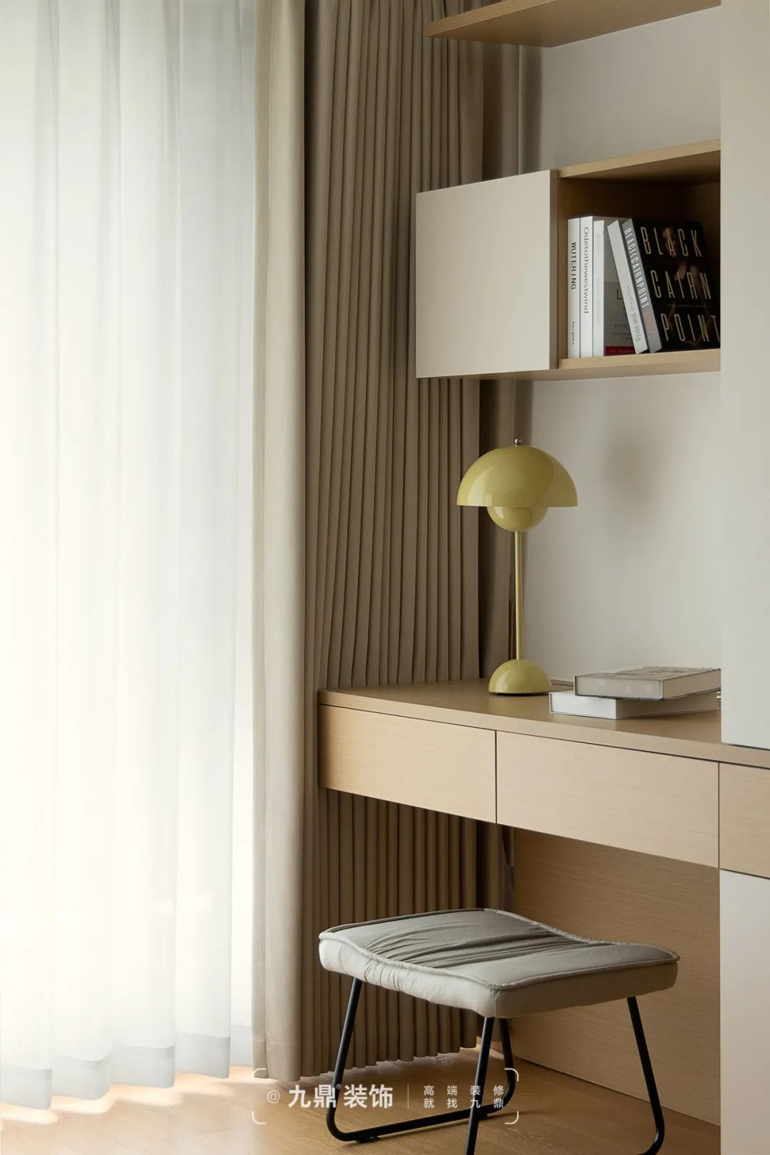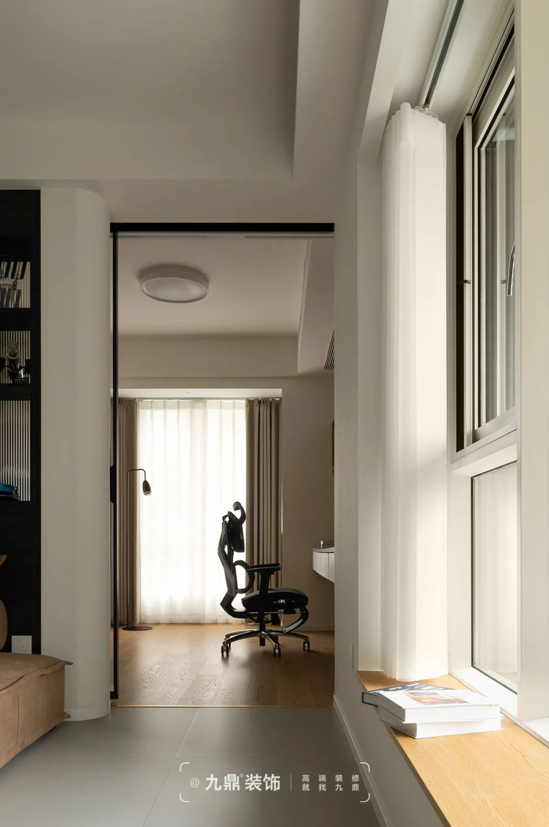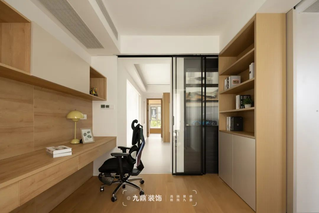 書房打破了(le)原有(yǒu)布跼(ju)設(shè)置了(le)雙動(dòng)線(xiàn),既能(néng)從(cong)餐廳進(jin)入,又(yòu)能(néng)從(cong)客廳進(jin)入。開放時空間更加(jia)開闊,提升視線(xiàn)的(de)通(tong)透感,封閉時就變成(cheng)了(le)一(yi)箇(ge)私密的(de)空間,可(kě)以(yi)沉浸在(zai)工(gong)作(zuò)或學(xué)習之(zhi)中(zhong)。